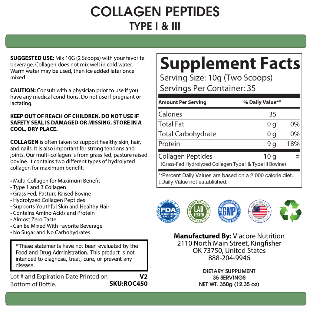 Ingredients: Collagen Peptides (Grass-Fed Hydrolyzed Collagen Type I & Type III Bovine)